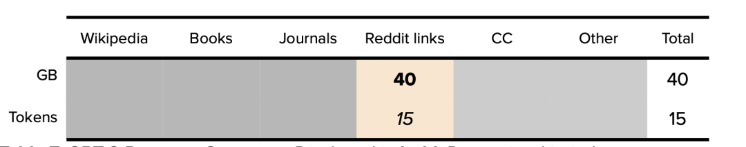 表7. GPT-2数据集总结。 公开的数据以粗体表示,确定的数据以斜体表示。