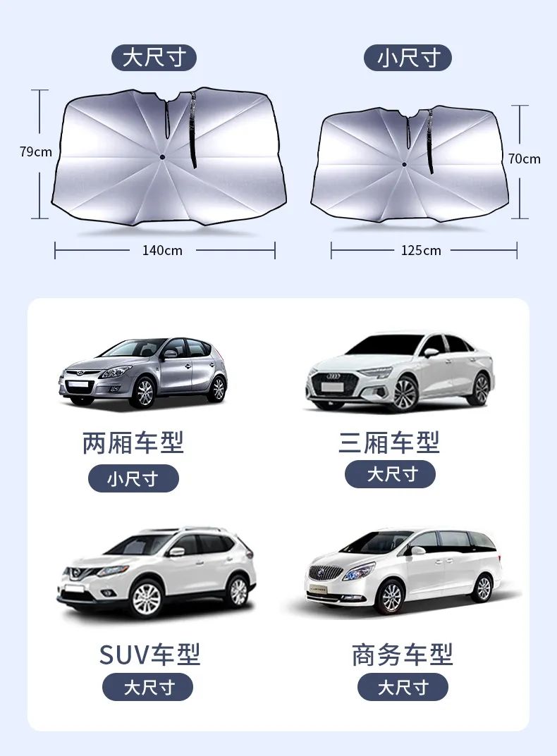 适配多款尺寸车辆,大小两款型号可选,99%主流车型均可使用。