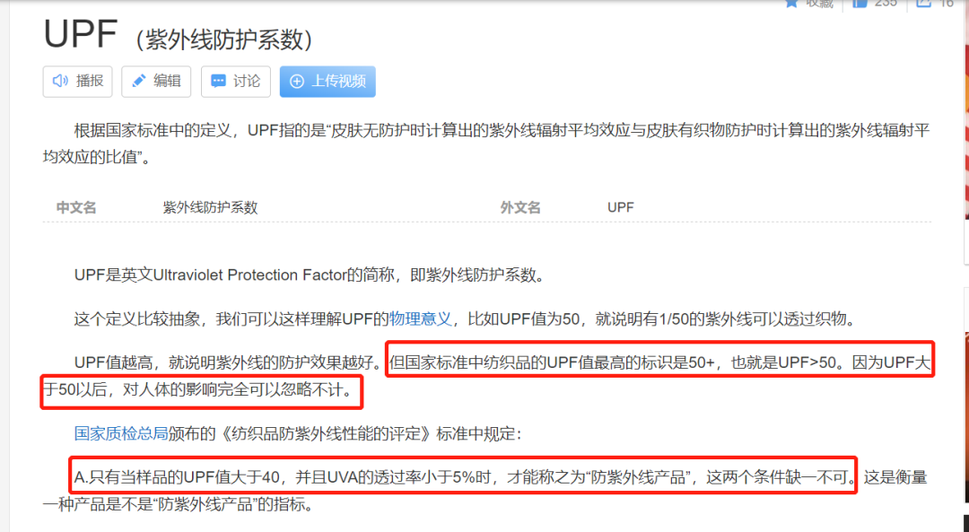 根据国家标准:纺织品品UPF值最高标识为50+,只有样品UPF>40,并且UVA的透光率小,5%时,才能称之为“防紫外线产品”。