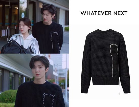 其中,段嘉许突发阑尾炎紧急送医,住院期间桑稚无微不至地照顾,在痊愈后接他出院时,段嘉许的一身WHATEVER NEXT黑色休闲华夫格毛衣,胸前编织飘带设计给他稳重的形象增添些许少年活力。