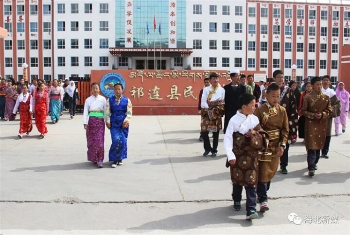 一切随着时代的进步悄然发生变化。2011年秋季,祁连县民族中学整体搬迁至祁连县新城区健康路东侧,总占地面积81245平方米,新建多媒体教室、平整的运动场、图书室、食堂等,完善了校园基础设施。学生有了免费的营养午餐,中午不用因为家远再忍饥挨饿,享受和城里孩子一样的待遇。整个校园绿化、净化、亮化、美化后,成了一座知识花园。过去自制的简单教具、水泥做成的黑板、缺腿的桌椅尘封在了记忆里。