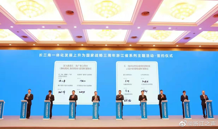 【长三角(湖州)产业合作区正式揭牌】长三角(湖州)产业合作区昨天(19日)正式揭牌。启动仪式上,长合区和广德市人民政府签订共同建设“长三角产业合作区”战略合作框架协议。双方就共建会商机制、共编区域规划、共推产业升级、共同招商推介、共联交通网络、共抓生态联防、共畅政务服务、共享公共资源八大方面进行友好协商,并达成协议,加快推动浙皖毗邻区域合作向高水平、深层次、宽领域发展,共同推进长三角更高质量一体化发展。(浙江之声记者叶树刚,综合长三角湖州发布微信公众号)