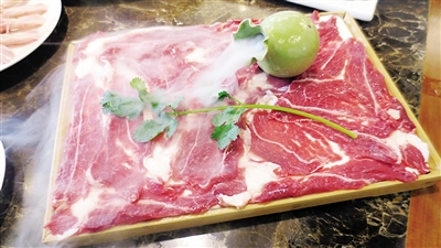 现切鲜牛肉:顾名思义,现点现切。新鲜牛肉洗净,切片处理,薄如纸片,大小均匀,毫厘之间见刀功。