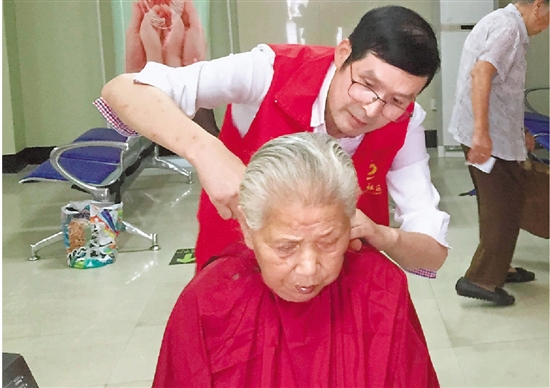 | 蒋方荣正在为老人理发。 |