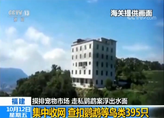 这是缉私人员在侦查中拍摄的画面,这栋白色楼房就是嫌疑人林某在福州长乐租来养殖鹦鹉的场所。另外,他还在闽侯老家有一个鹦鹉养殖场,这两个养殖场一来掩盖走私活动,二是用来繁殖鹦鹉销售牟利。