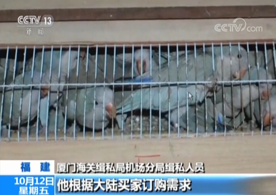 厦门海关缉私局机场分局副局长 王旭东:因为台湾过来的鹦鹉价格比较低廉,然后中间有很大的利润空间,所以很多人就冒着很大的风险,不惜代价参与走私这个事情。