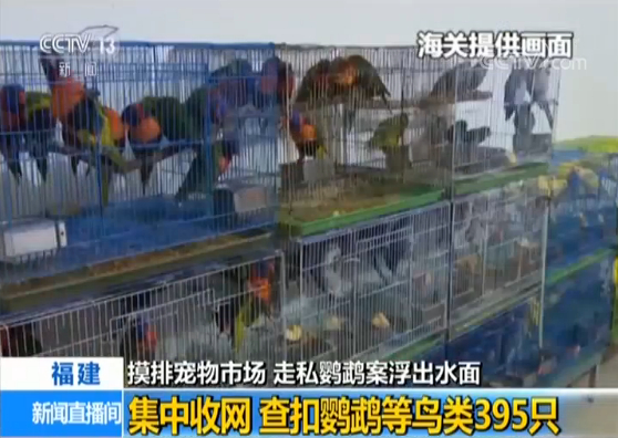 厦门海关缉私局机场分局缉私人员:鹦鹉它其实是国际公约列明的一个保护物种,它的国际贸易和进出口都受到严格管制,那市面上出现这么多来自境外的鹦鹉,我们怀疑这背后可能存在比较大的走私嫌疑。