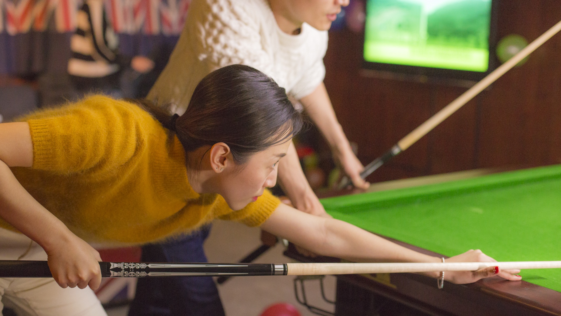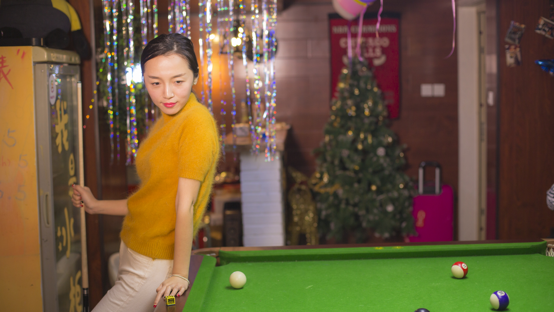 艾米和朋友们倾诉着一年的奔波,交流着有趣的八卦,一时间咿咿呀呀,沸沸扬扬,惊喜和欢笑声不绝于耳。聊得尽兴了,便站起身到一旁的台球桌一比高下,或者投入地玩一场桌游,或者来一场撕名牌大战,直接将现场的气氛推至高点。
