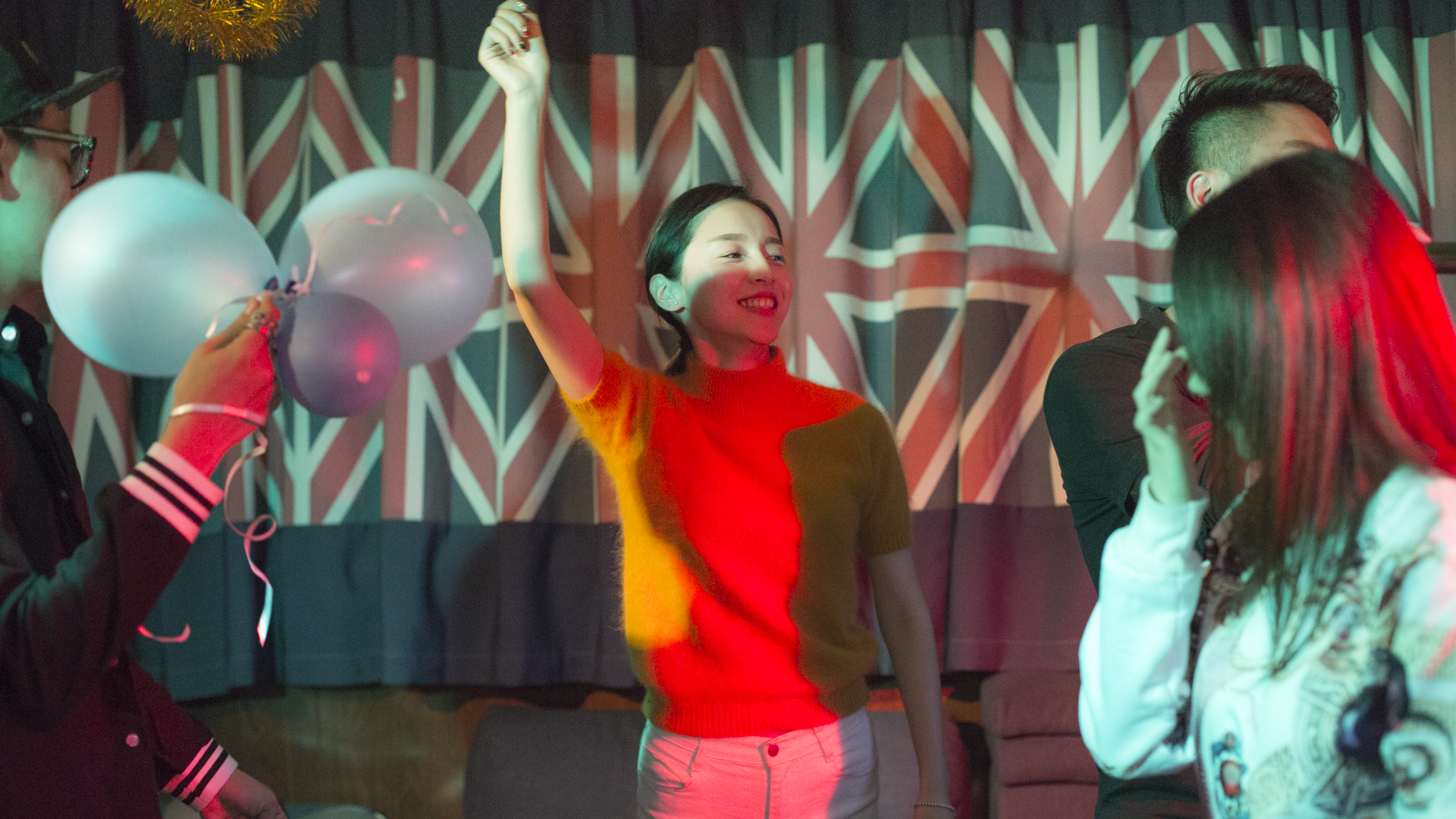 紧张和刺激过后,他们辗转到一个轰趴馆,“轰趴”是“Home Party”的英译汉发音,这种新兴的聚会方式在一线大城市的年轻人群中颇受欢迎,艾米和她的朋友们就喜欢把他们最放松的时刻放在这里。这里有色彩鲜明的装饰,五彩斑斓的灯光,风格各异的音乐,几块慕斯蛋糕,一盘水果蛋挞,几杯色彩艳丽的鸡尾酒,俨然是一个氛围浓厚、极具格调的浪漫环境。