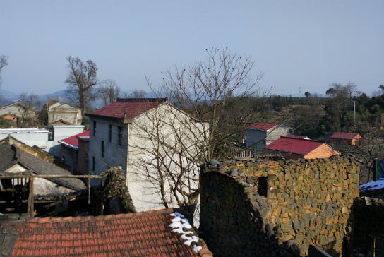 浙江省新昌县双彩乡后谢村的新别墅和老房错落