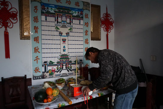 除夕夜,老高给家里的祖宗敬酒