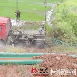 红网株洲站8月15日讯(株洲晚报记者 刘玺)昨日,垄茶高速云阳山服务区附近,一辆载有30吨盐酸的槽罐车突然失控,冲出高速护栏后侧翻在土坡底部,由于槽罐盖子部分脱落,槽罐内的盐酸不停泄漏。幸运的是,车内受伤的两名男子及时逃生。