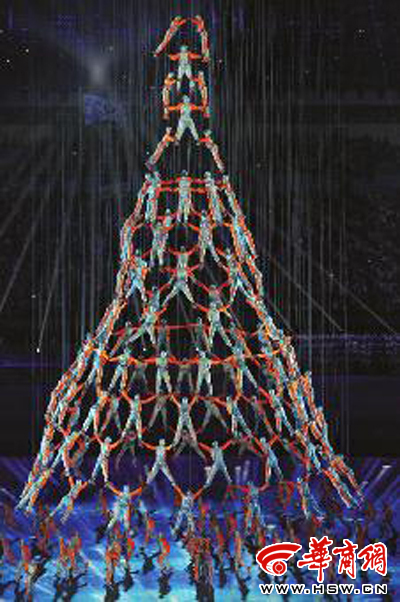 《筑梦之塔》当之无愧地成为昨晚开幕式最佳节目。该节目中,数百名青年向场地中央聚集,他们忽然间腾空而起,带着闪耀光芒层层攀登,一座“筑梦之塔”拔地而起,颜色形态变幻莫测,忽而舒展,忽而内敛,正如每个人的梦想各异、色彩纷呈。