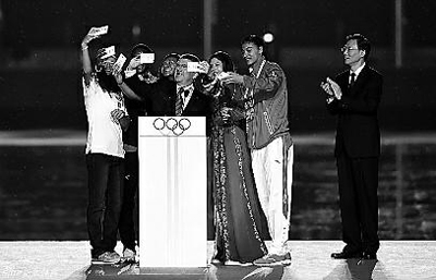 开幕式上,国际奥委会主席巴赫登场致辞,他掏出手机,并向全场观众说:“现在请大家拿出手机,让我们一起完成一项自拍的纪录。”随后,几名运动员登场,围着巴赫主席进行自拍。中新