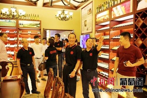 庄主乔振义带着与会嘉宾参观了酒庄,并在旗舰店品评美酒。