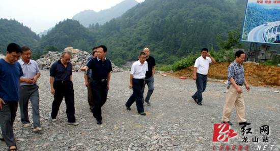 湘西州委书记叶红专(左四)一行在龙永高速建设施工现场实地查看 吴开准/摄