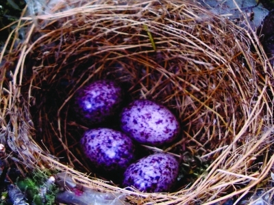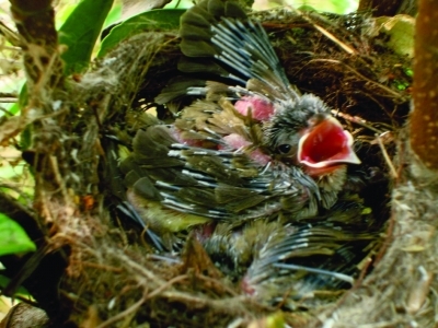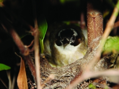 记者来到南京幕府山景观道上,看到旁边有一棵棵的桂花树,白头翁的窝就搭在其中一棵1米多高的桂花树枝杈下。整个鸟窝有排球大小。武先生告诉记者,仅三四天的时间,这对白头翁就搭建起了一个小小的蜗居,非常精致。“没几天,窝里陆续生了4枚鸟蛋。”武先生说,鸟蛋上布满了豆沙红色斑点,大小和麻雀蛋一样。此后,这对白头翁夫妻开始了明确的分工,每天雌白头翁负责孵蛋宝宝,雄白头翁则负责送餐和站岗放哨。大约半个月后,四只小家伙破壳而出。白头翁夫妻开始不停地捕食喂养孩子。仅仅四五天后,雏鸟的羽毛已开始丰满。记者看到小白头翁鸟时,它们已能攀上树枝了。扬子晚报记者梅建明