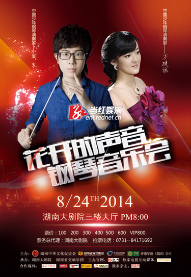 (8月24日晚8点,青年钢琴演奏家周末、万捷妮将在湖南大剧院奏响《花开的声音》钢琴音乐会。)