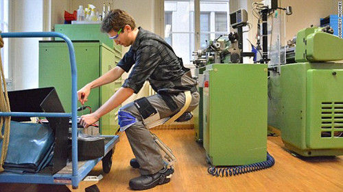 瑞士发明外骨骼“隐形椅” 随时想坐就坐
