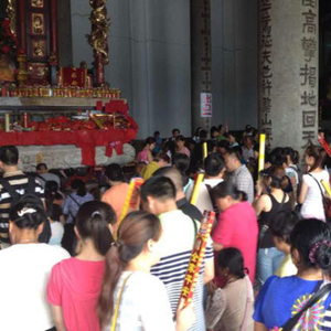 24日晚上11点,南岳大街小巷灯火通明,行人川流不息。各条道路旁边的停车线内都停满了挂有全国各地牌照的车辆,通往大庙及游客服务中心的道路更是异常的拥挤,行人与车辆缓缓移动,还有许多进香车辆源源不断驶向南岳大庙。大庙里更是人如潮涌,出现了人贴人的场面。大庙内的每个殿堂内外都被挤得水泄不通,更有不少香客干脆就在殿堂外虔诚朝拜、祈福。