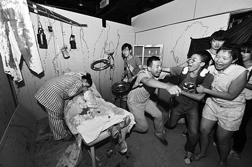 昨日,一个名为“藤木病院”的恐怖、惊悚主题巡展在太原市柳巷一家商场开展。这个被参观者称为“鬼屋”的展厅,吸引了一些喜欢寻求刺激、喜爱猎奇的年轻人前去体验惊魂一刻,现场尖叫连连。