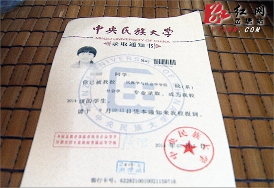 王小慧(化名)的录取通知书红网岳塘站8月28日讯(分站记者 胡飞云 通讯员 帅白兰)还有十几天就要启程到北京上大学了,这几天王小慧(化名)总是默默的在妈妈的理发店里,多做些力所能及的事情,整理家务、扫地、择菜……做得再多,她也觉得还是少了。