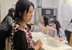 袁磊的母亲在检查身体准备为袁磊进行移植■华商晨报 华商响网记者 杜宝忠 摄