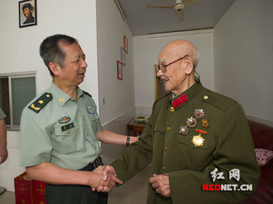 (原标题:湖南省军区副司令员戴焕向老红军慰问中秋(图))