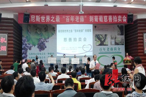 (中方县基尼斯世界之最“百年老藤”刺葡萄慈善拍卖会现场)