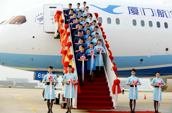 与新制服更换同样令人振奋的消息是787机型的正式投入使用,2014年8月31日,厦门航空迎来首架波音787的正式加盟,厦门航空正式成为国内第三家拥有全球最先进机型“梦想客机”的航空公司。这预示着厦航国际化进程迈出了重要的一步,全面开启国际化运营新起点。