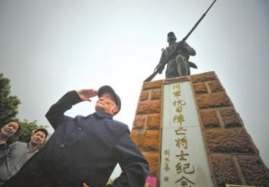 (原标题:川军抗战纪念碑下 98岁老兵拄拐行军礼)