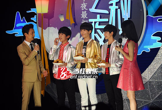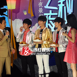 因为两大人气组合同台亮相,即便有韩磊、杨宗纬、高晓松等诸多大腕登台,也难盖过TFBOYS和EXO的风头。对于同样人气披靡的EXO,TFBOYS三人集体谦称自己是晚辈。成员易烊千玺表示不愿两方留给外界PK的印象:“他们是前辈,我们还不能跟他们比,希望粉丝之间也不要攀比,我们希望跟他们学习的。”队长王俊凯随后接过话柄,表示:“他们跳舞特别强,我们向他们学习,不会去在意人气方面的东西。”