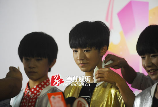 目前已获得不少娱乐圈前辈的看好,除开成员王俊凯,其他两人还是中学生的TFBOYS已经瞬间进入国内娱乐圈的人气榜首。尽管知名度暴增,三位小男生的工作团队却并未迅速成长。晚间在录制完后接受媒体采访,三人大汗淋漓的拿起话筒开始回答提问后,其工作人员突然登台为三位成员擦汗,导致问答中途停止,三个男生略显尴尬。这样的画面在十分钟左右的采访里前后出现数次,而媒体每当提问就被擦汗环节打断,引来一片哗然。比起诸多大牌艺人团队面对同样场面选择默默在侧递上纸巾,三个男生身边的工作团队还有一段不短的学习路。