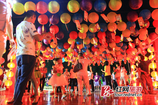 (灯谜游戏吸引了众多游客。)