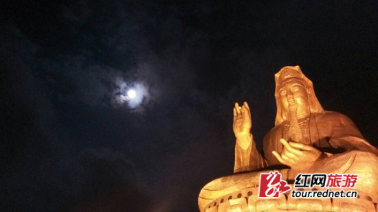 (西樵山上,金佛与明月相映成辉。)