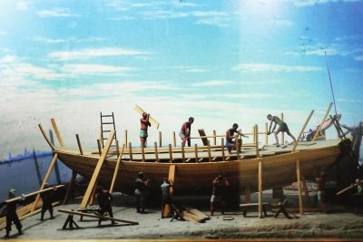 根据桅杆的大小、长度以及桅杆上铁箍的位置,可以初步估计这是一艘不小的船舶,有远洋的能力。