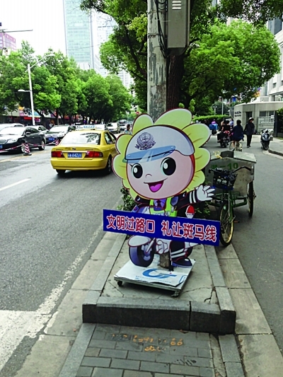 南京街头提醒司机礼让的标志。