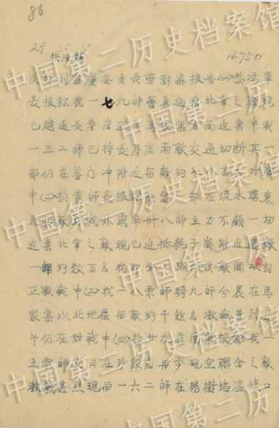 1940年5月8日,第三十三集团军总司令张自忠报告战况致蒋介石电 (中国第二历史档案馆提供)