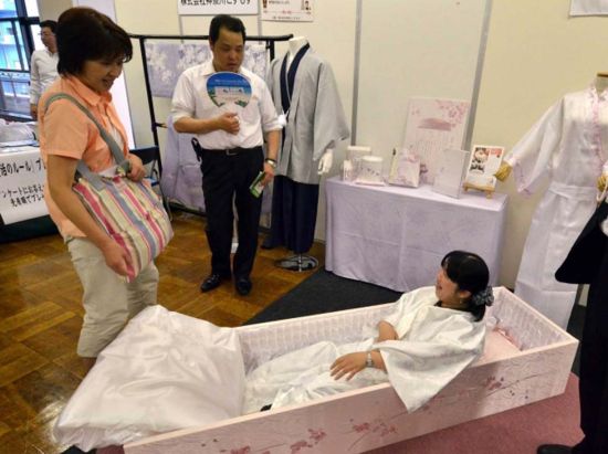 日本“体验葬礼”活动受热捧 可试穿寿衣躺进棺材(组图)