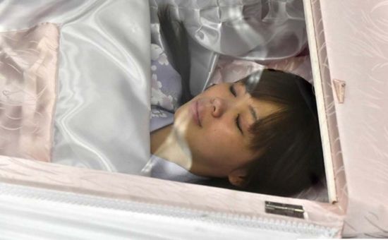 日本“体验葬礼”活动受热捧,可试穿寿衣躺进棺材。