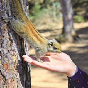 食物气味、喂食动作、声音大小等因素出现偏差,都可能导致动物出现咬人这样的自我防御行为。在喂食野生松鼠的过程中,动作应该轻柔、缓慢,不能过快;喂食人声音的大小、高低、声调都要注意,尤其不能有类似尖叫的声音,否则都有可能刺激到野生动物,引起自我防御行为。此外,松鼠喜欢啃食坚果类食品,如果部分游客随意喂其他类型食物,一旦食物的异常气味刺激到松鼠,也可能引发松鼠的自我防御行为。
