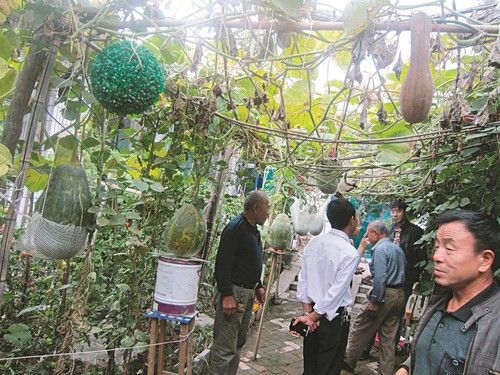 今日下午,记者来到牛文会家,在路边闲聊的十多个村民也跟着过来,“呀呀,结了这来多呢(注:太原话,是这么多的意思),个头也都不小。”“我好几次来他家里,都没注意到有这么多。”邻居们感叹道。有人建议牛文会,“等今年瓜熟透后,留下里面的瓜籽,来年再种上。”