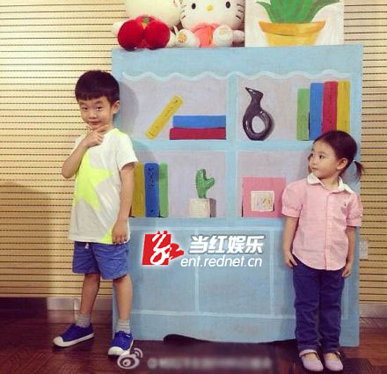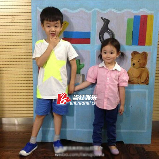 都是体操世界冠军的后代,杨阳洋与奥莉一直被“粉丝”视为金童玉女,而杨威对着奥莉的照片微博喊话,“就三个字!儿媳妇!呵呵。”而李小鹏的回应则是:“哈哈,排队。”然而此次两个小朋友的碰面,在台下的杨阳洋与奥莉都难免几分娇羞,面对照相机虽然牵手和摆出有爱的POSE,但都显得几分紧张。比起在“爸爸去哪儿”中其他孩子都是年龄、身高相仿,此次面对要小不少的奥莉妹妹,杨阳洋则变身暖男大哥哥,在休息室里就相当照顾。