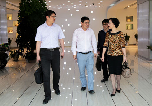 共青团浙江省委书记周艳(右一)、副书记王征(左一)在挖财CEO李治国(左二)陪同下调研互联网创业园区