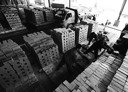 10月29日,灵石县山西聚义宝鑫新材料有限公司煤矸石制砖生产线的成品库内,工人们正将多孔砖搬运装车。该项目采用大断面吊顶隧道窑一次码烧工艺,利用煤矸石做原料,解决了煤矸石积存带来的环境与生态问题。