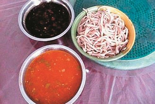 11点半,家住太原上马街的刘爱珍,开始为自己和老伴准备中午饭——包皮面,从柜子中分别取出白面、红面,各自和成一个小面团后,将白面团上案揉匀按扁,包入红面团成圆球形,再按扁,用擀杖擀成大片,再用刀划成长条,投入开水锅内煮熟捞出即成,红白相映,韧滑可口。“以前是难得吃上一顿白面,现在是想着法儿地加进去些杂粮,健康。”刘爱珍笑着说。