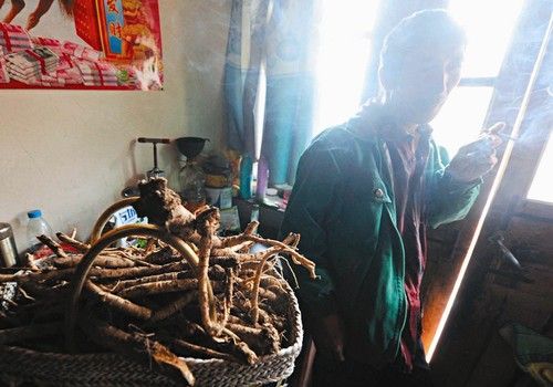 2.靠山吃山,时节到了,留守村里的老人们会弄一些野生药材去换几个零用钱