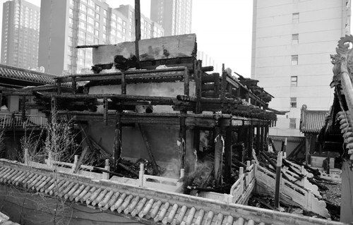 太原伏龙寺大雄宝殿突发大火化为灰烬