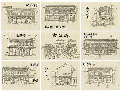 食品街美食哪家强 看着素描找饭庄