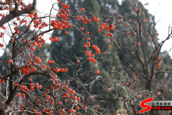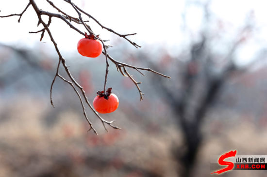 火红柿子挂枝头 冬日观之别样美